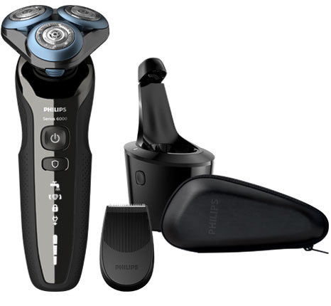 ContinueUz aparat za brijanje Philips S6000 dobijate dodatak za podrezivanje brkova i zulufa, tašnu za putovanja i SmartClean stanicu za čišćenje, podmazivanje i punjenje aparata za brijanje.